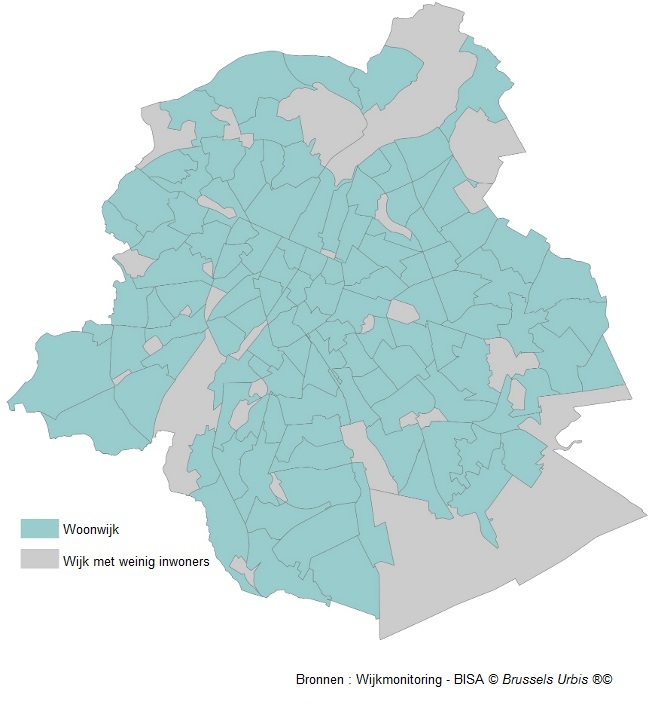 De Wijkmonitoring deelt het Brussels Hoofdstedelijk Gewest in 145 wijken. Deze 145 wijken zijn onderverdeeld in twee groepen: